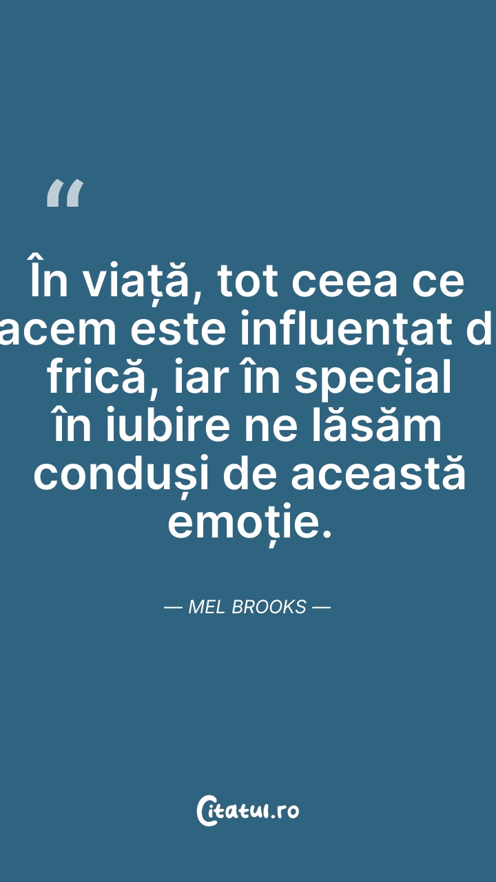 Tot ceea facem in viata este bazat pe frica, ... Citește tot citatul >