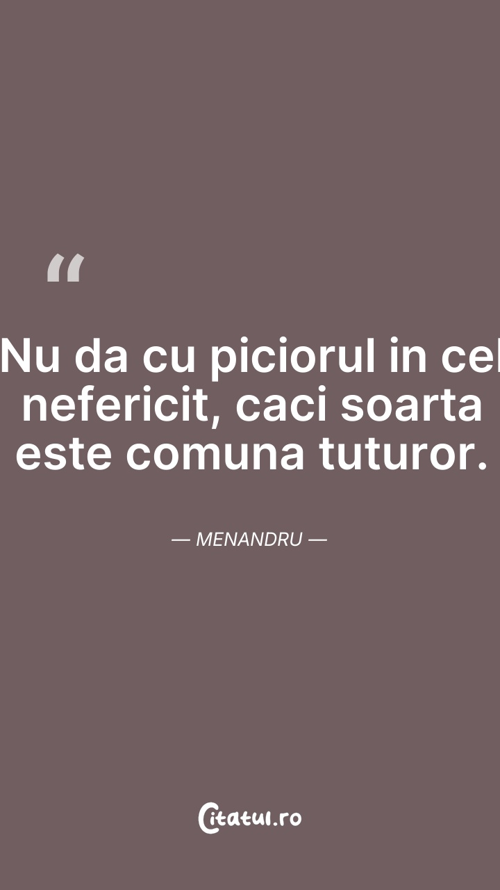 Menandru a fost un poet dramatic grec și principalul reprezentant al comediei noi. Aduce importante inovații comediei clasice, renunțând la cor și mărind numărul personajelor. A compus peste o sută de comedii, prima realizând-o la vârsta de 22 de ani. I-a influențat pe Plaut și pe Terențiu, iar acesta din urmă chiar i-a copiat comediile. Cea mai mare parte a textelor sale a fost descoperită în prima jumătate a secolului al XX-lea, până atunci moștenirea sa literară constând în câteva sute de versuri independente, cu caracter sentențios. De asemenea, el menționează în lucrările sale unele date cu privire la neamul geților. Menandru a fost elevul lui Teofrast.