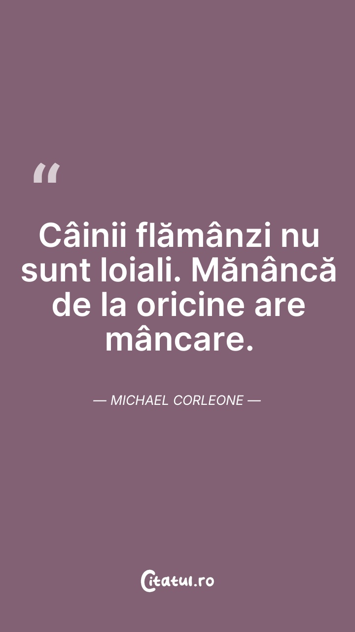 Câinii flămânzi nu sunt loiali. Mănâncă de la ... Citește tot citatul >