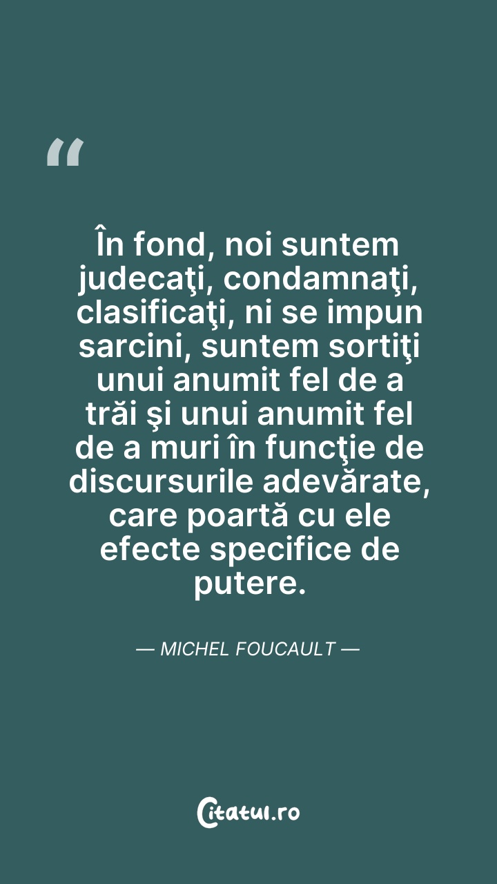 Michel Foucault a fost un filosof și istoric francez a cărui operă, catalogată drept postmodernistă sau poststructuralistă, a avut puternice ecouri în filosofia și istoria științei, psihanaliză, sociologie.