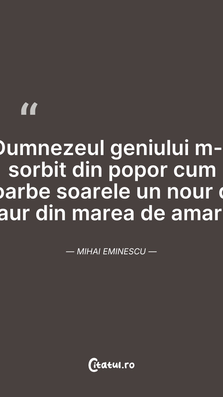 Mihai Eminescu a fost un poet, prozator și jurnalist român, considerat cea mai influentă personalitate din literatura română. A publicat un singur volum antum, Poesii, compus din poemele apărute în revista Convorbiri literare a societății Junimea. Printre operele notabile se numără Luceafărul, Odă și cele cinci Scrisori.