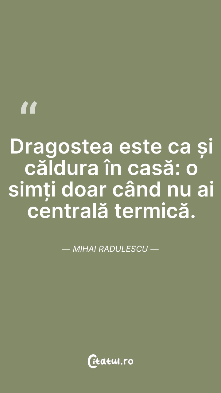 Dragostea este ca și căldura în casă: o simți ... Citește tot citatul >