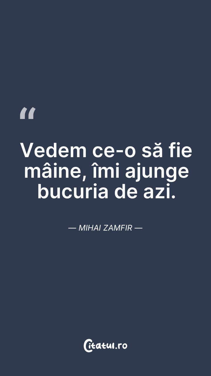 Vedem ce-o să fie mâine, îmi ajunge bucuria d ... Citește tot citatul >