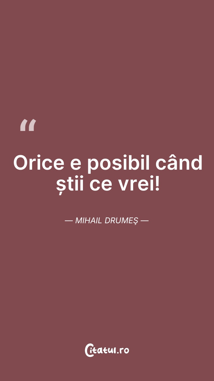 Orice e posibil când știi ce vrei! Mihail Dru ... Citește tot citatul >