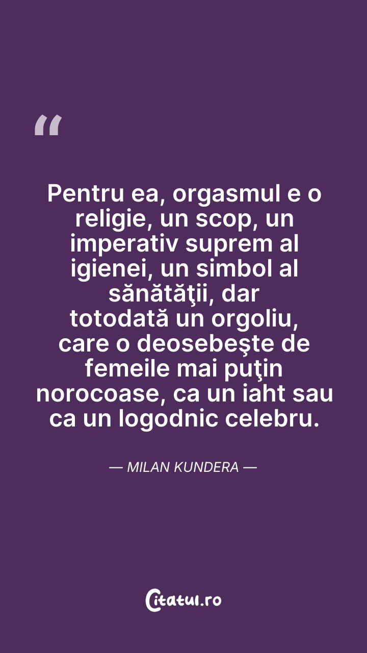 Pentru ea, orgasmul e o religie, un scop, un ... Citește tot citatul >