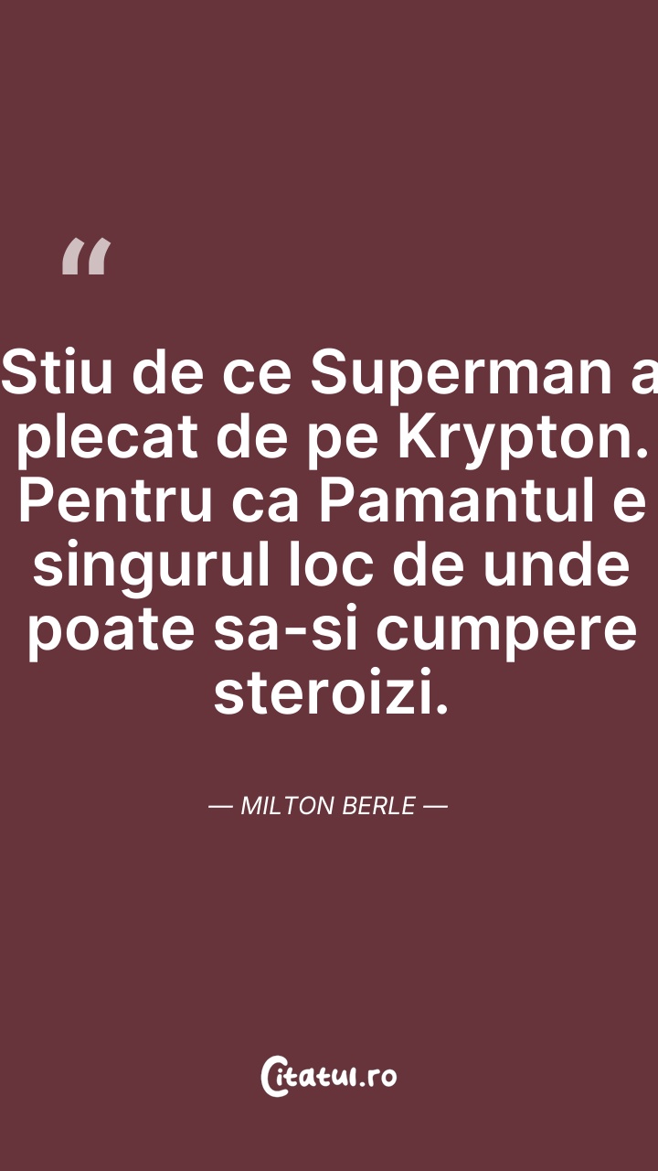 Ştiu de ce Superman a plecat de pe Krypton. P ... Citește tot citatul >