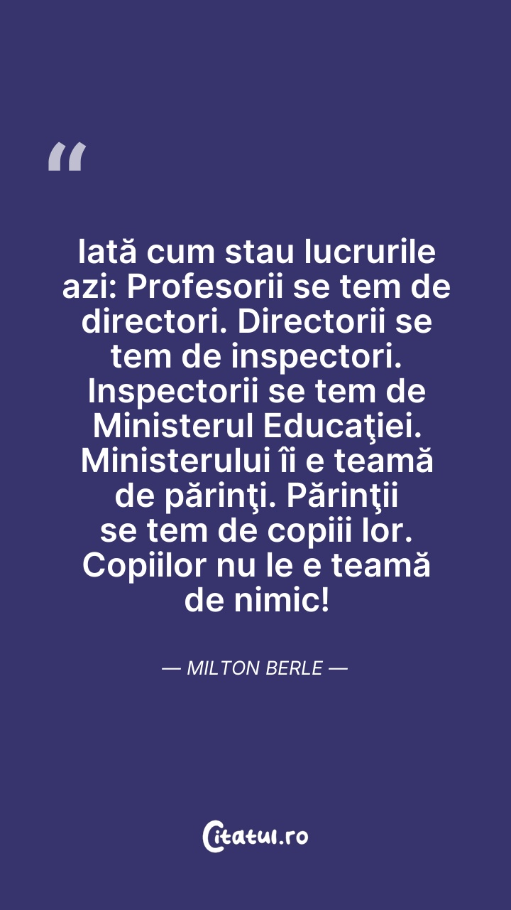 Iată cum stau lucrurile azi: Profesorii se te ... Citește tot citatul >