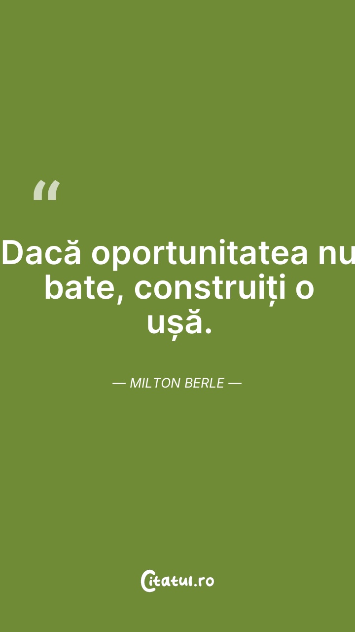 Dacă oportunitatea nu bate, construiți o ușă. ... Citește tot citatul >