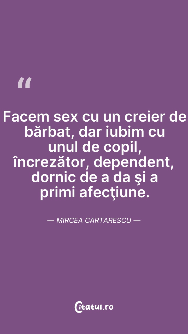 Facem sex cu un creier de bărbat, dar iubim c ... Citește tot citatul >