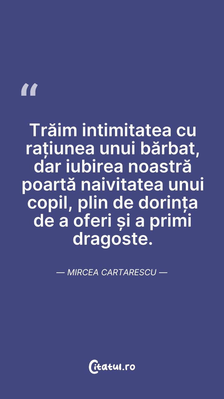 Trăim intimitatea cu rațiunea unui bărbat, da ... Citește tot citatul >