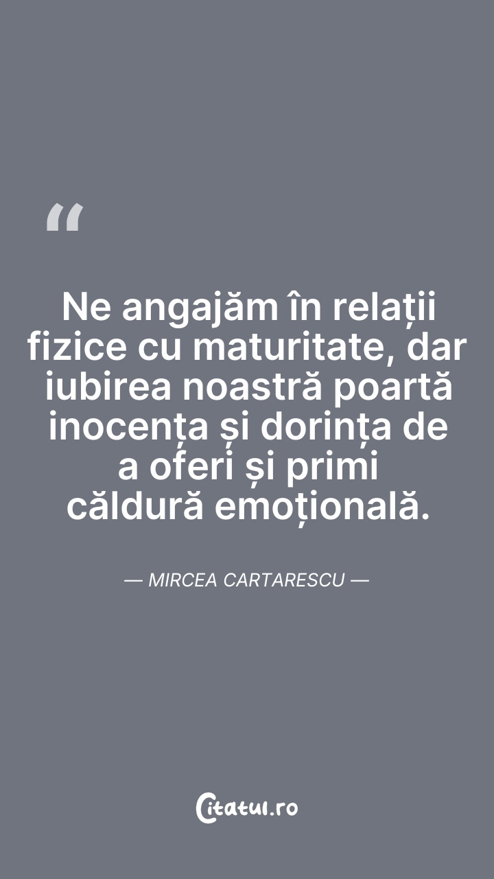 Ne angajăm în relații fizice cu maturitate, d ... Citește tot citatul >