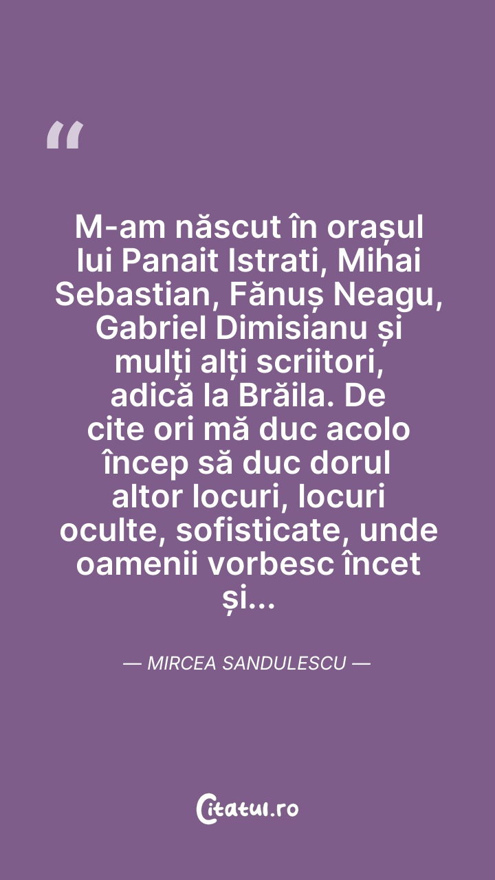 M-am născut în orașul lui Panait Istrati, Mih ... Citește tot citatul >