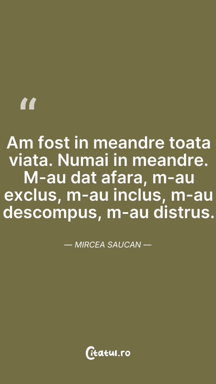 Am fost in meandre toata viata. Numai in mean ... Citește tot citatul >