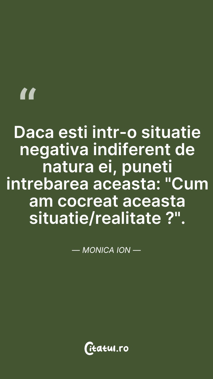 Daca esti intr-o situatie negativa indiferent ... Citește tot citatul >