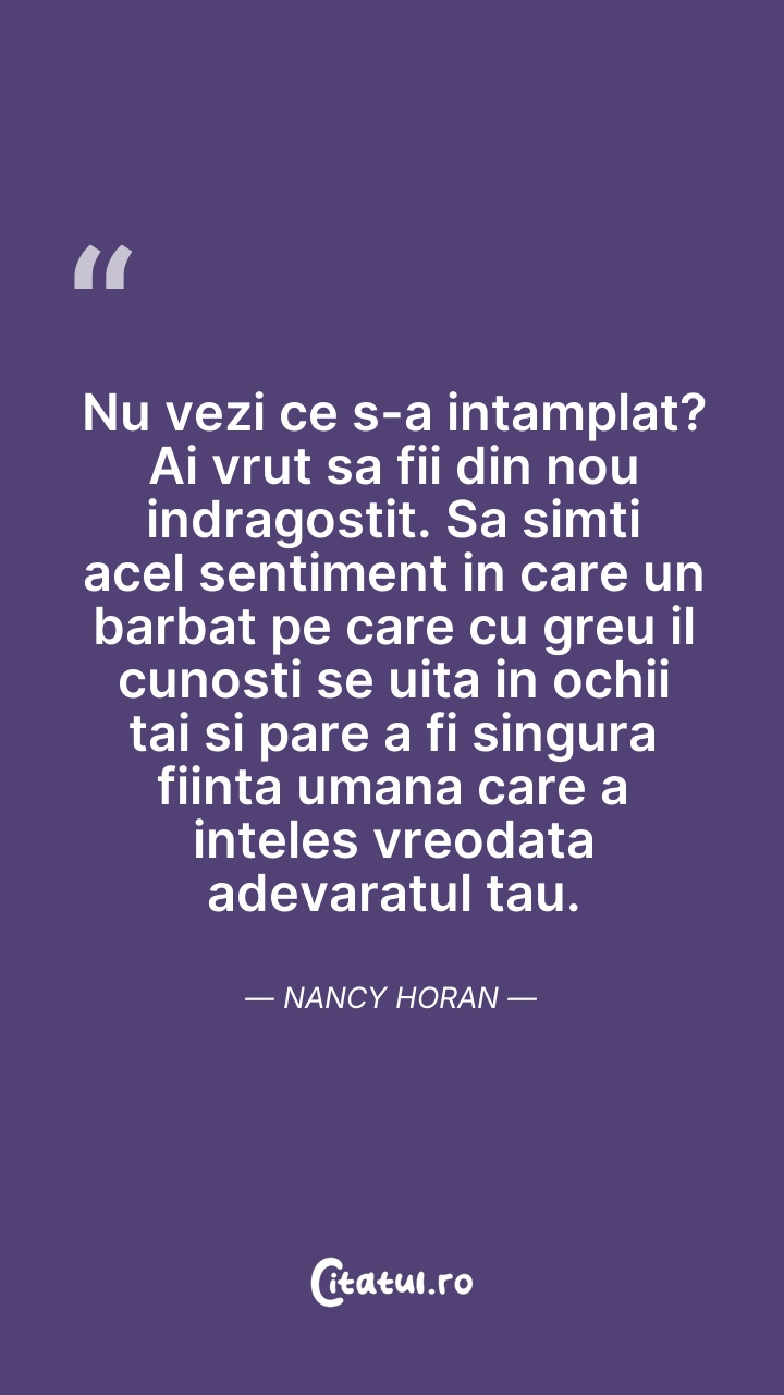 ✨ Colecția completă cu 1 citate atribuite lui Nancy Horan.