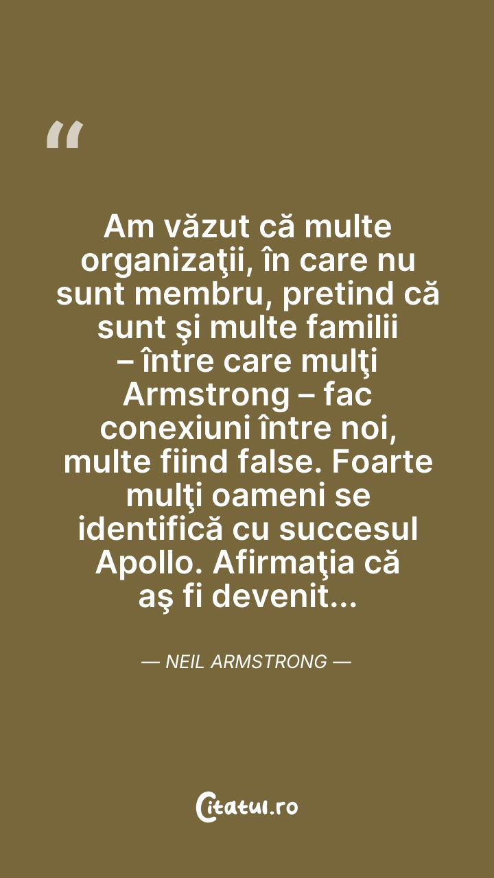 Neil Armstrong a fost un astronaut american, pilot de încercare și pilot naval, cunoscut ca fiind primul om care a pășit pe Lună.