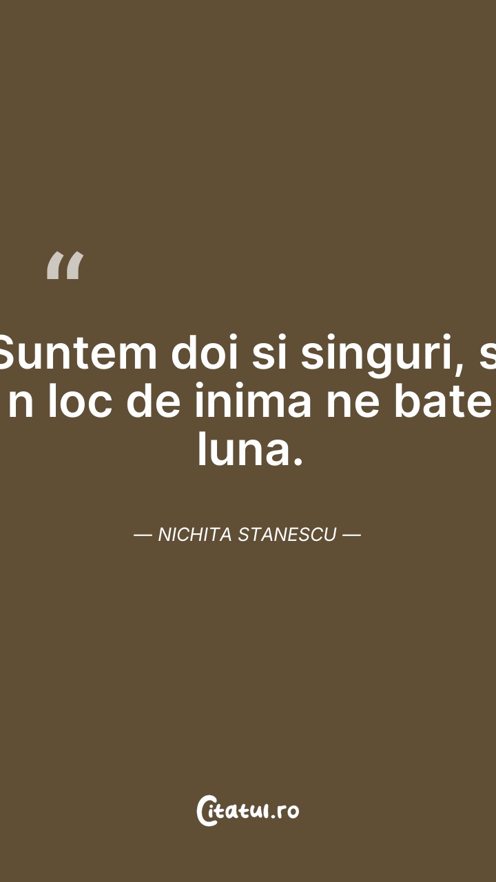 Suntem doi si singuri, si n loc de inima ne b ... Citește tot citatul >