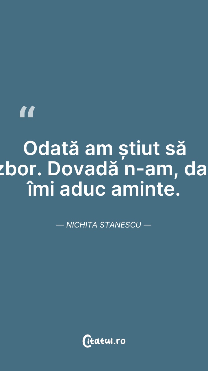 Odată am știut să zbor. Dovadă n-am, dar îmi ... Citește tot citatul >