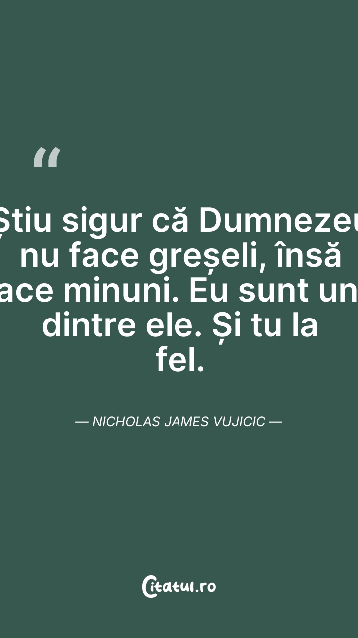 Știu sigur că Dumnezeu nu face greșeli, însă ... Citește tot citatul >