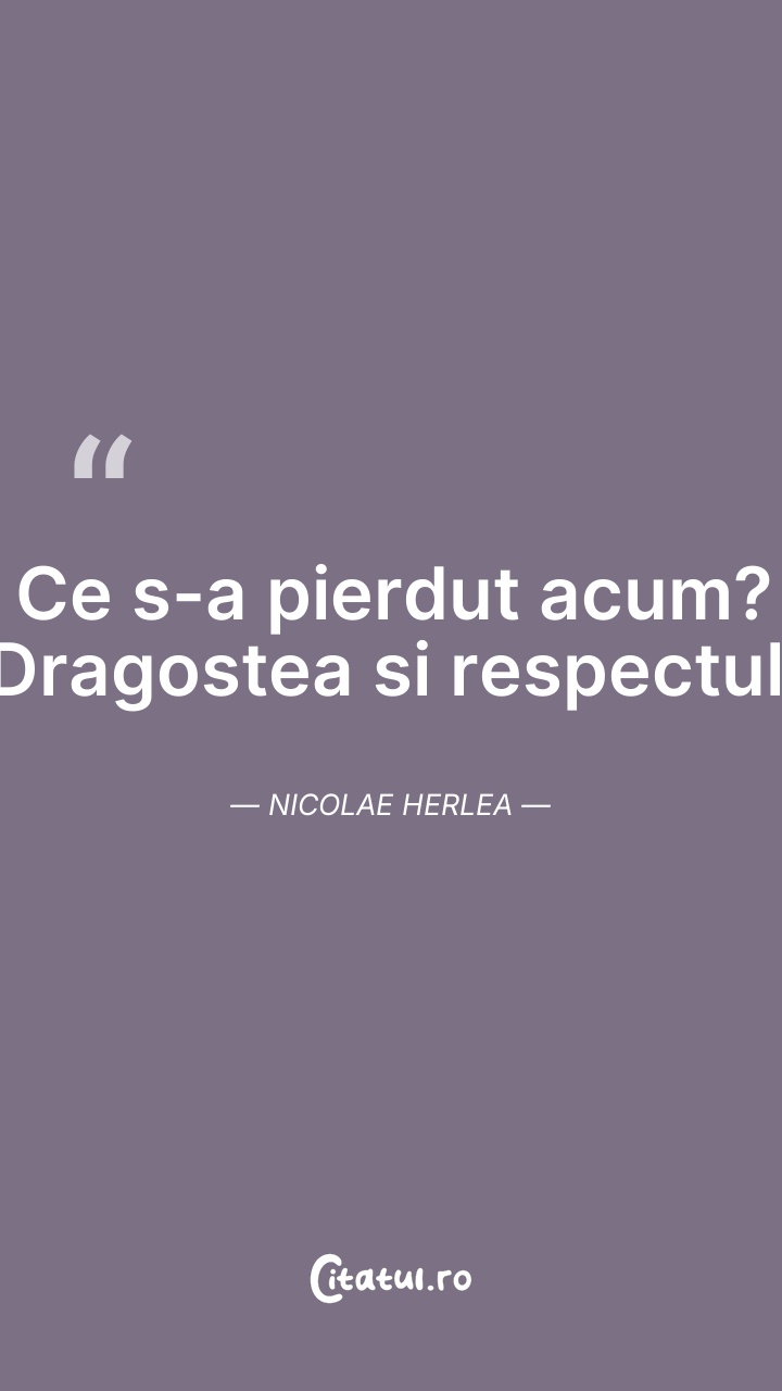 Ce s-a pierdut acum? Dragostea si respectul. ... Citește tot citatul >