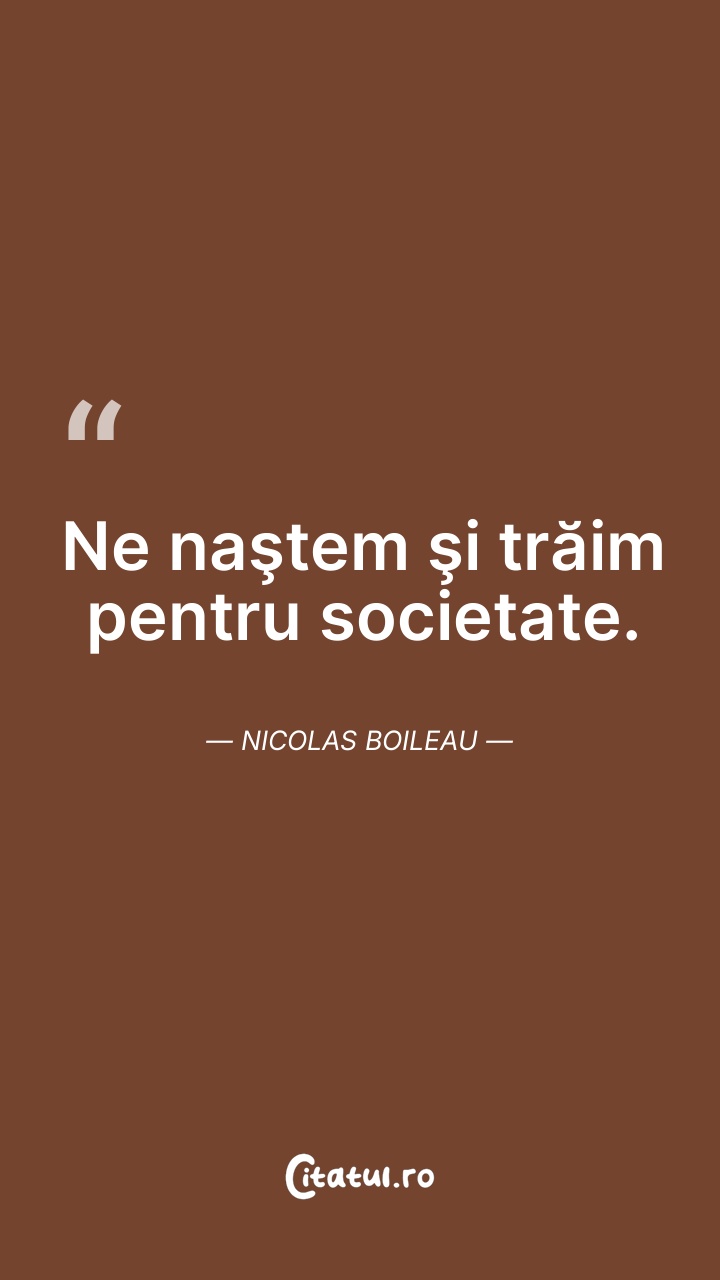 Ne naştem şi trăim pentru societate. Nicolas ... Citește tot citatul >