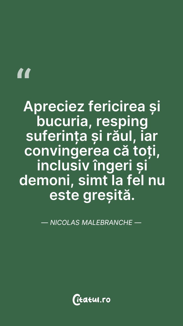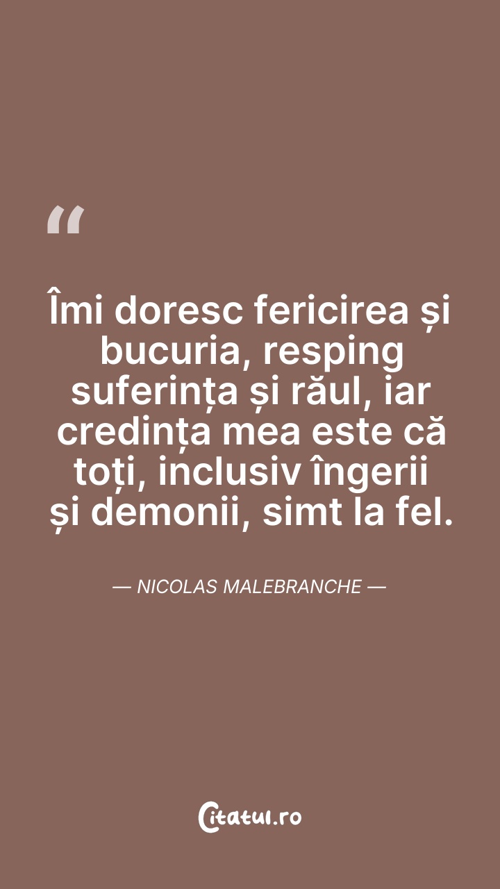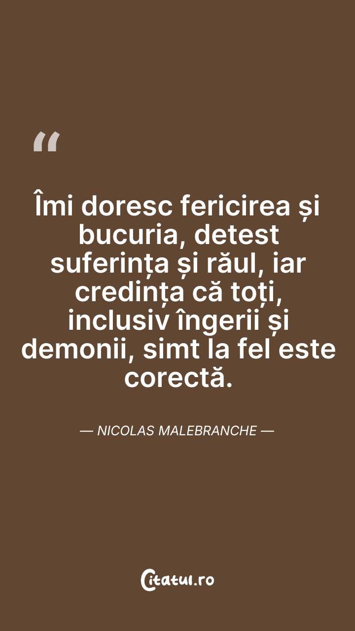 Îmi doresc fericirea și bucuria, detest sufer ... Citește tot citatul >