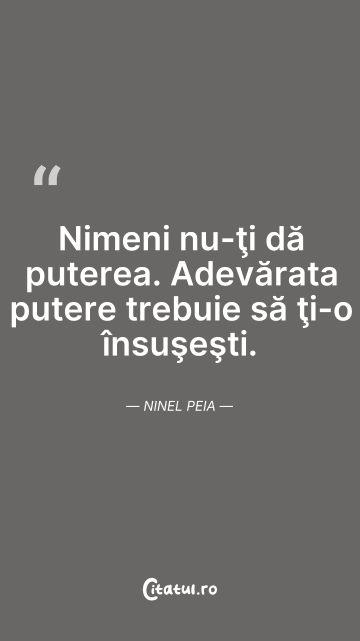 Nimeni nu-ţi dă puterea. Adevărata putere tre ... Citește tot citatul >