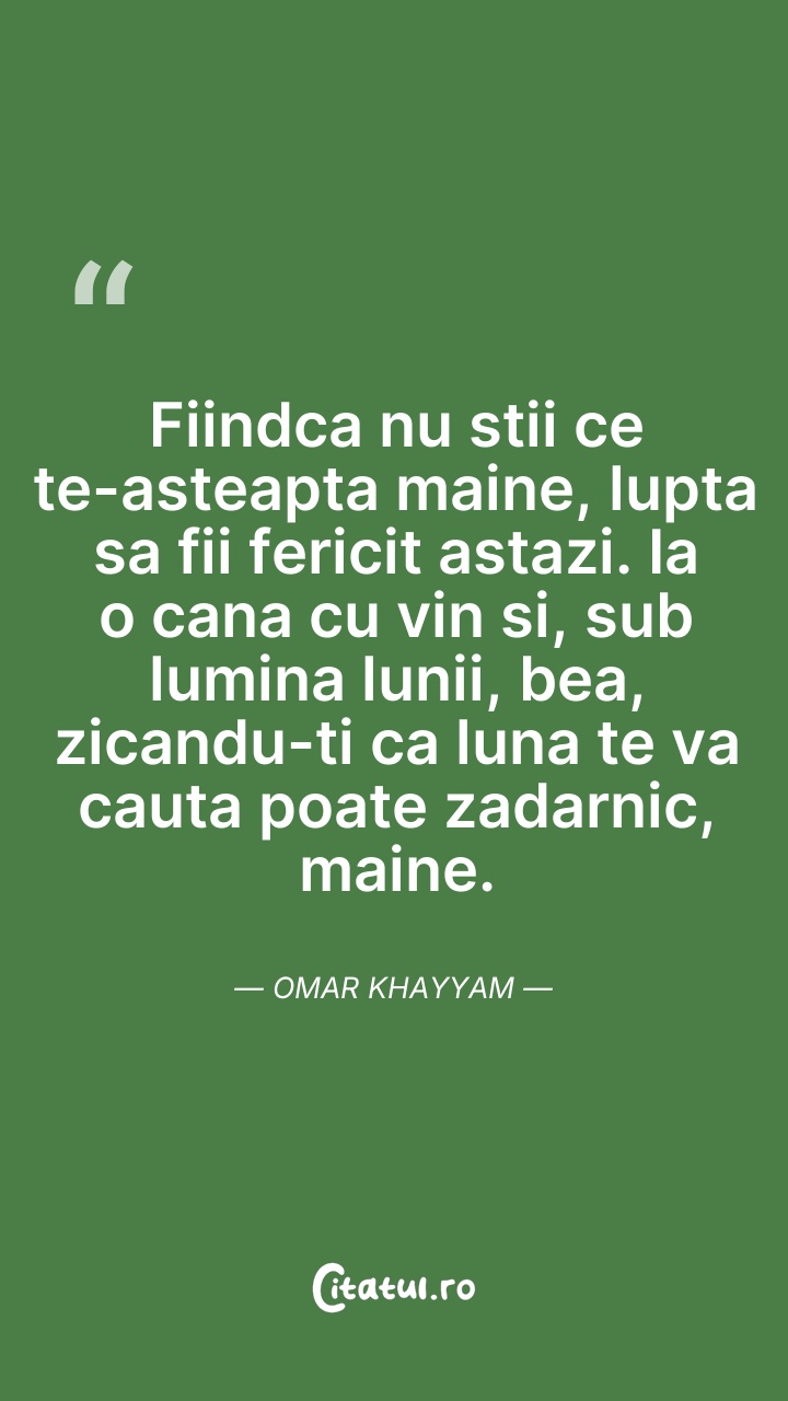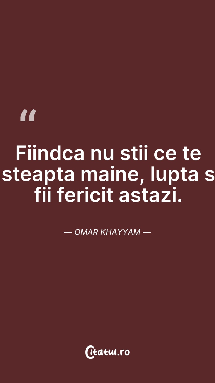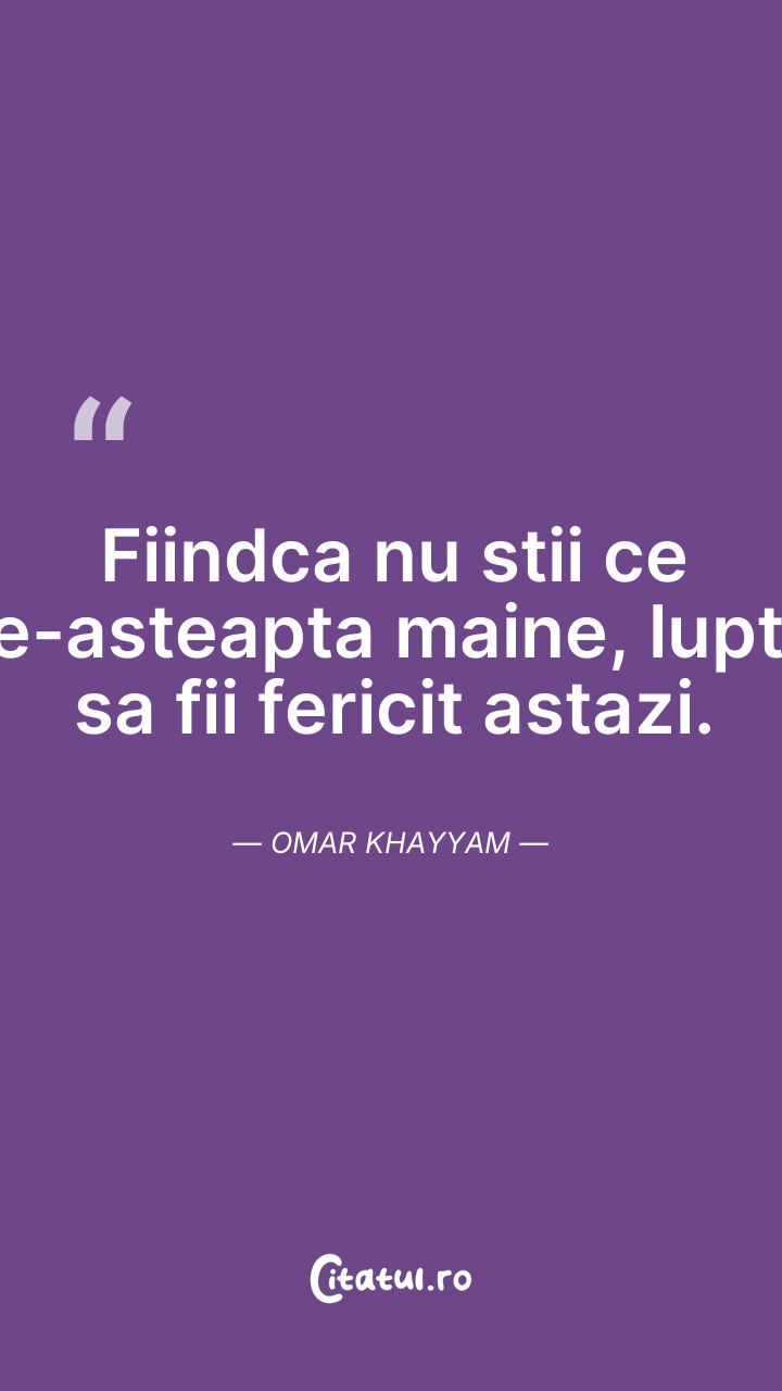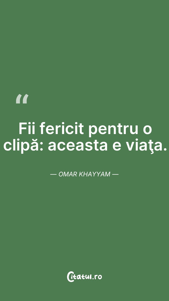 Fii fericit pentru o clipă: aceasta e viaţa. ... Citește tot citatul >