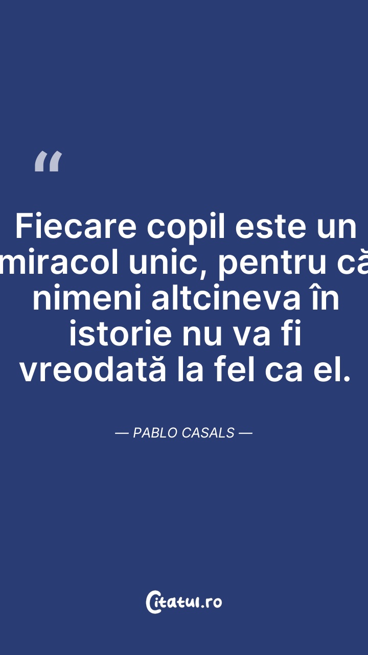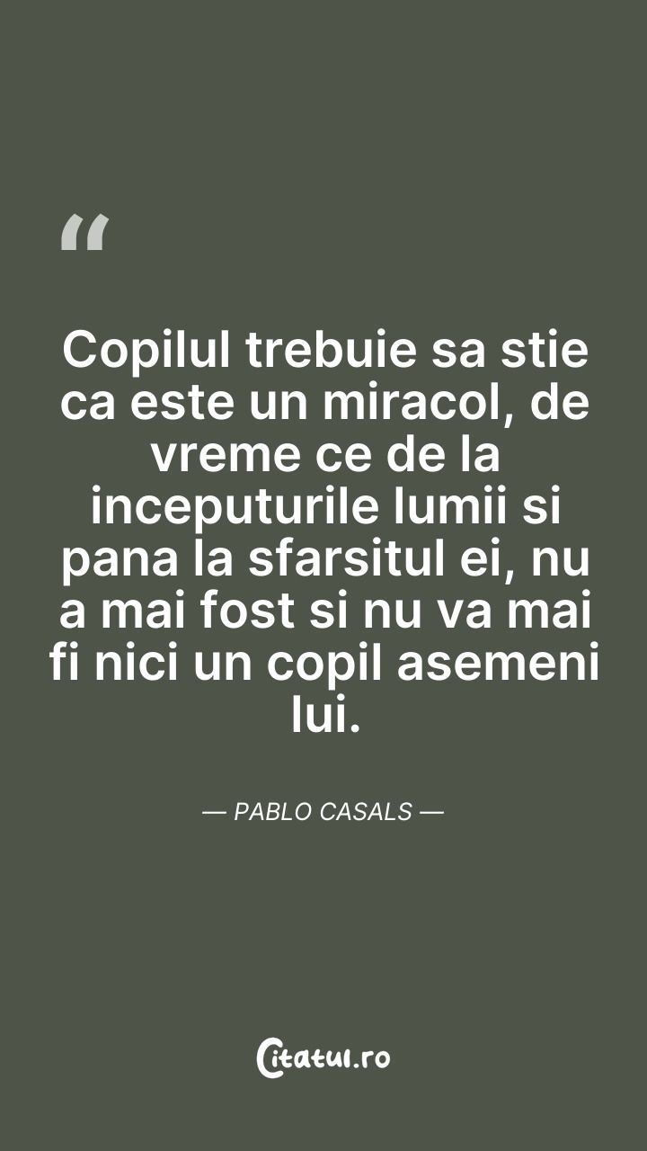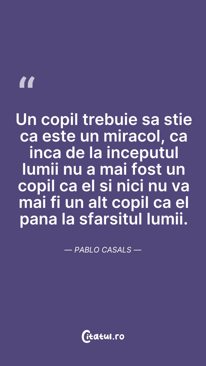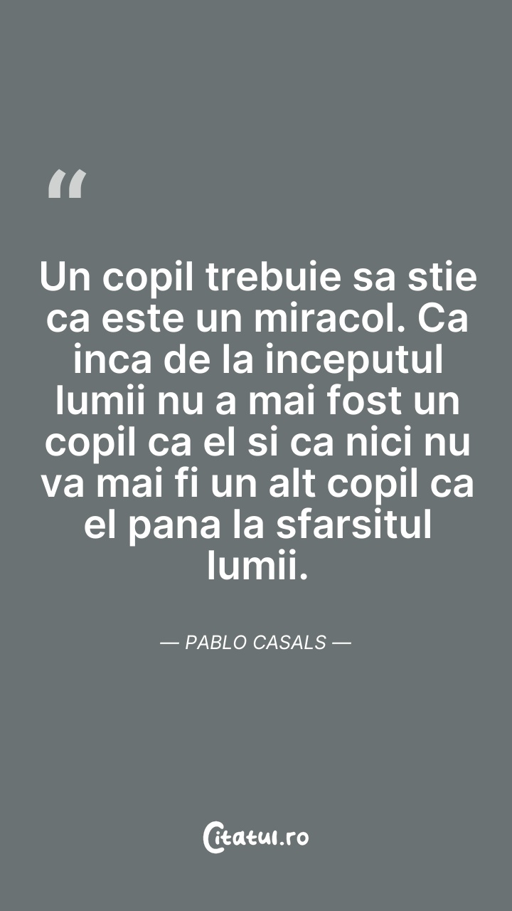Fiecare copil este un miracol unic, pentru că ... Citește tot citatul >