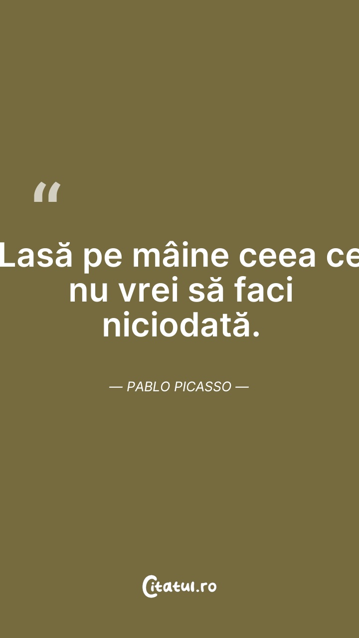 Lasă pe mâine ceea ce nu vrei să faci nicioda ... Citește tot citatul >