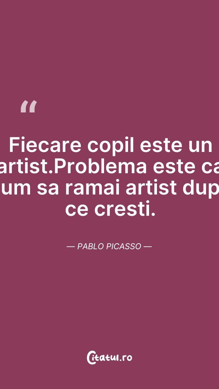 Fiecare copil este un artist. Problema este c ... Citește tot citatul >