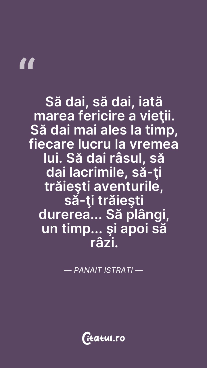 Să dai, să dai, iată marea fericire a vieţii. ... Citește tot citatul >