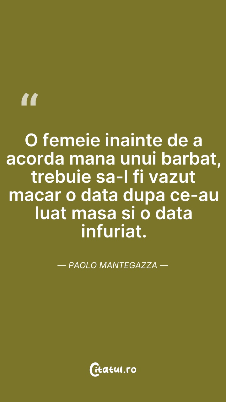 O femeie inainte de a acorda mana unui barbat ... Citește tot citatul >