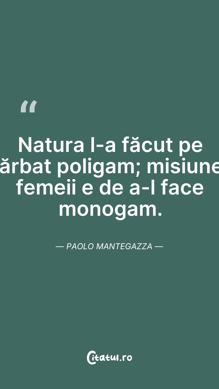 Natura l-a făcut pe bărbat poligam; misiunea ... Citește tot citatul >
