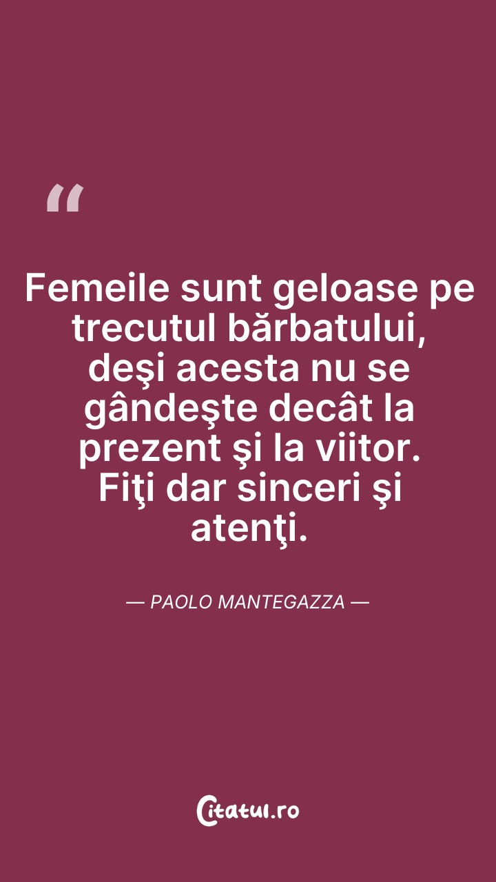 Femeile sunt geloase pe trecutul bărbatului, ... Citește tot citatul >