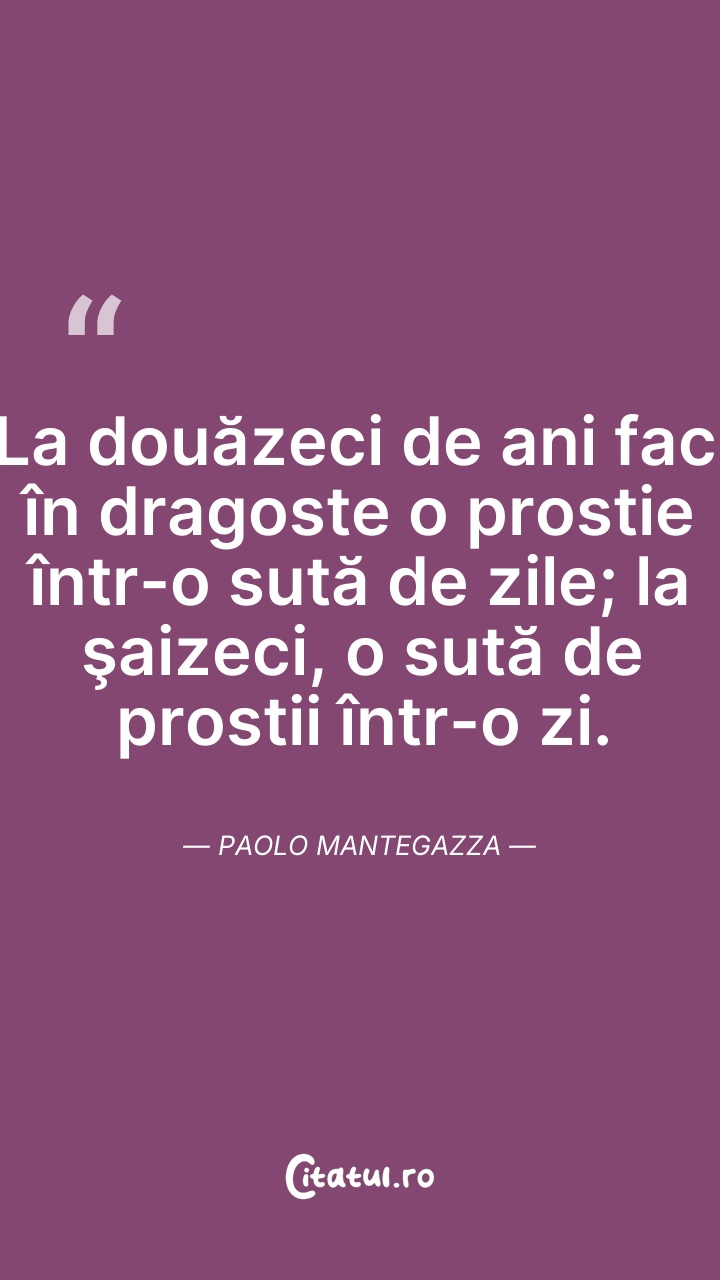 La douăzeci de ani faci în dragoste o prostie ... Citește tot citatul >