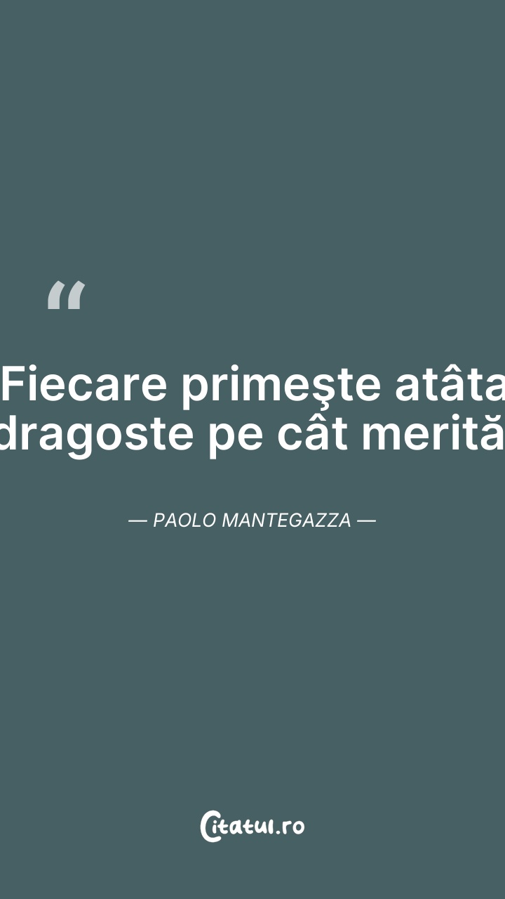 Fiecare primeşte atâta dragoste pe cât merită ... Citește tot citatul >