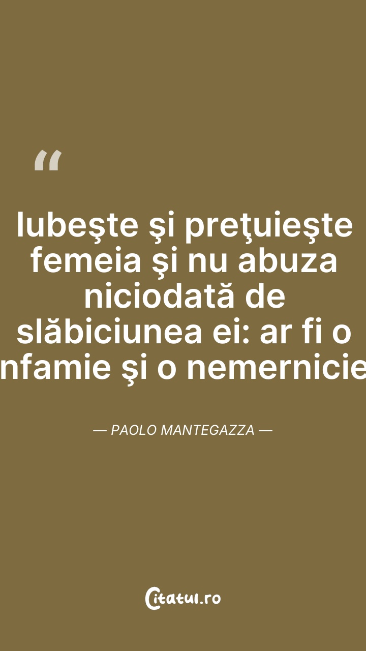 Iubeşte şi preţuieşte femeia şi nu abuza nici ... Citește tot citatul >