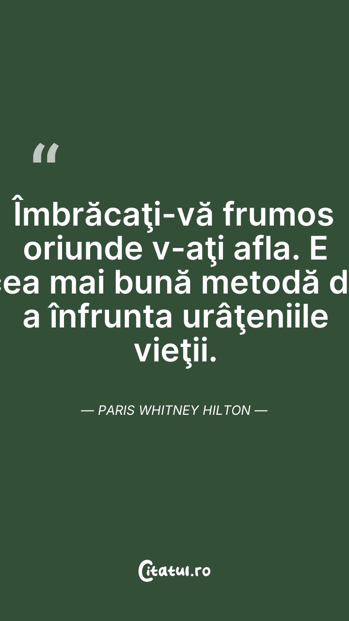 Îmbrăcaţi-vă frumos oriunde v-aţi afla. E cea ... Citește tot citatul >