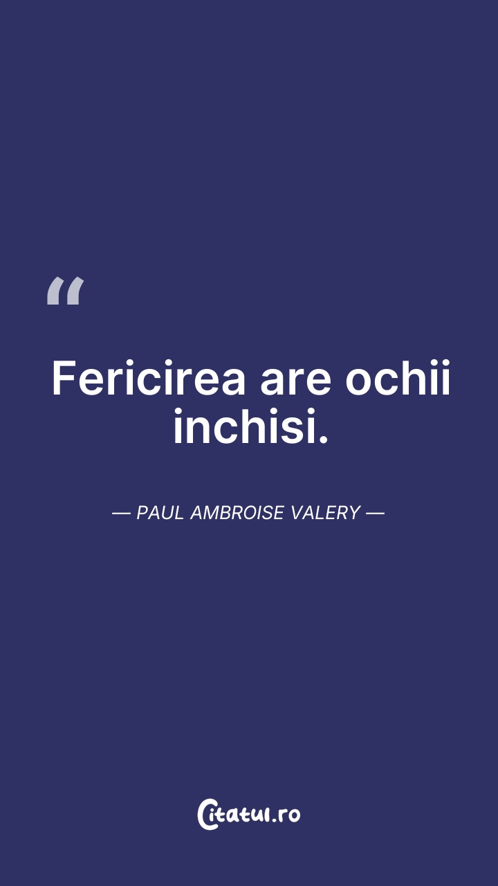 Fericirea are ochii inchisi. Paul Ambroise Va ... Citește tot citatul >