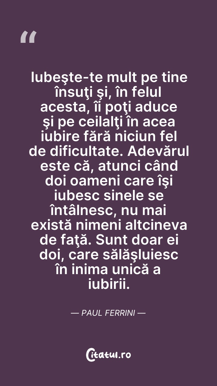 Iubeşte-te mult pe tine însuţi şi, în felul a ... Citește tot citatul >