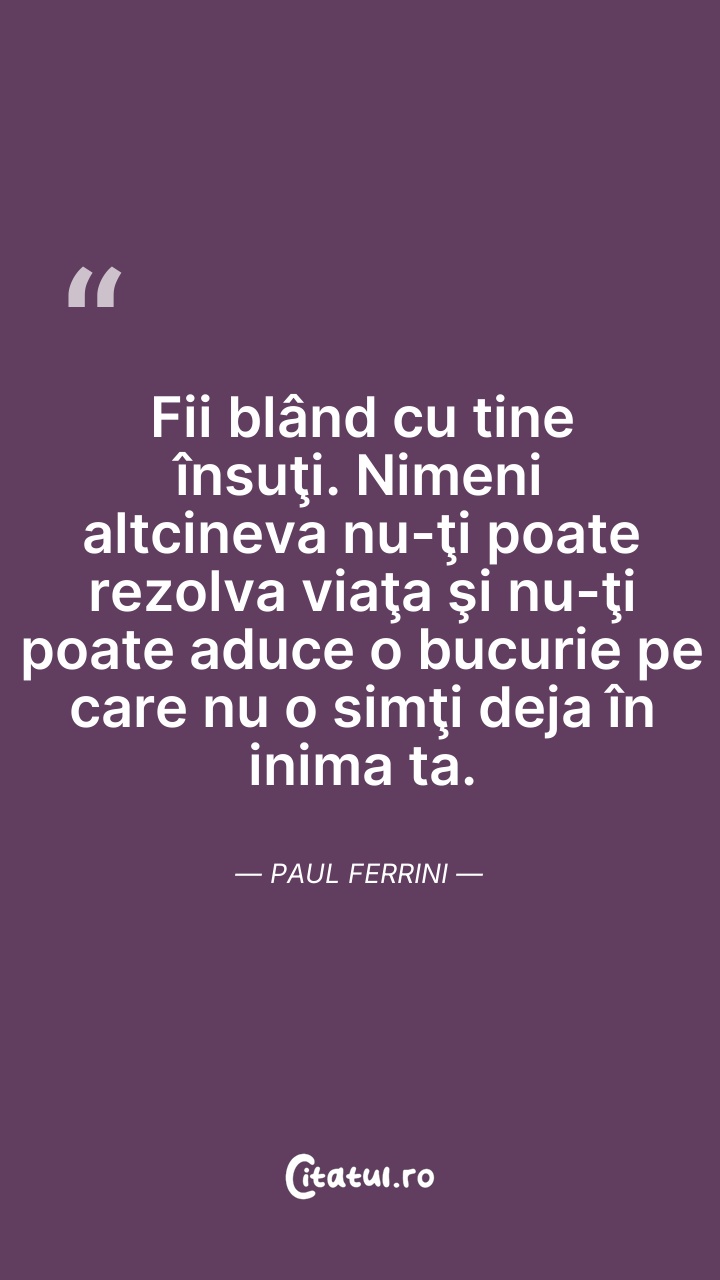 Fii blând cu tine însuţi. Nimeni altcineva nu ... Citește tot citatul >