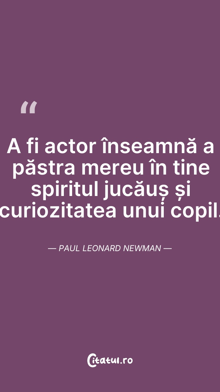 A fi actor înseamnă a păstra mereu în tine sp ... Citește tot citatul >
