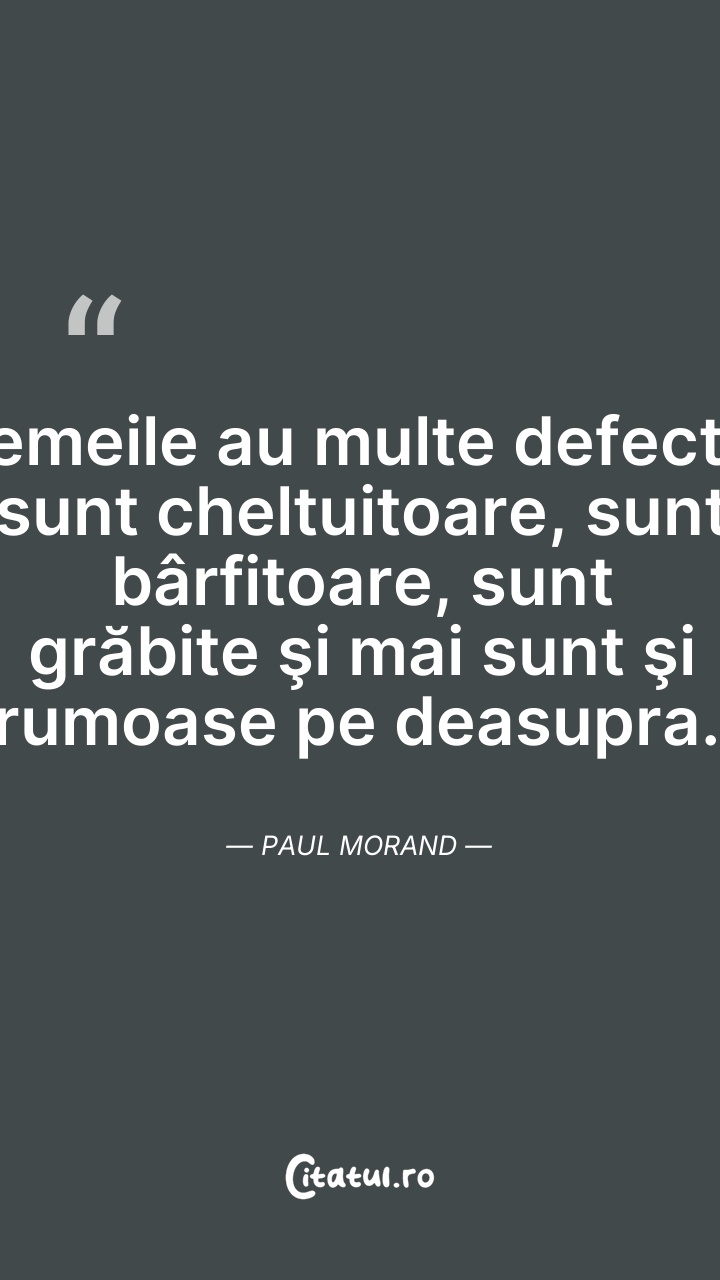 Femeile au multe defecte: sunt cheltuitoare, ... Citește tot citatul >