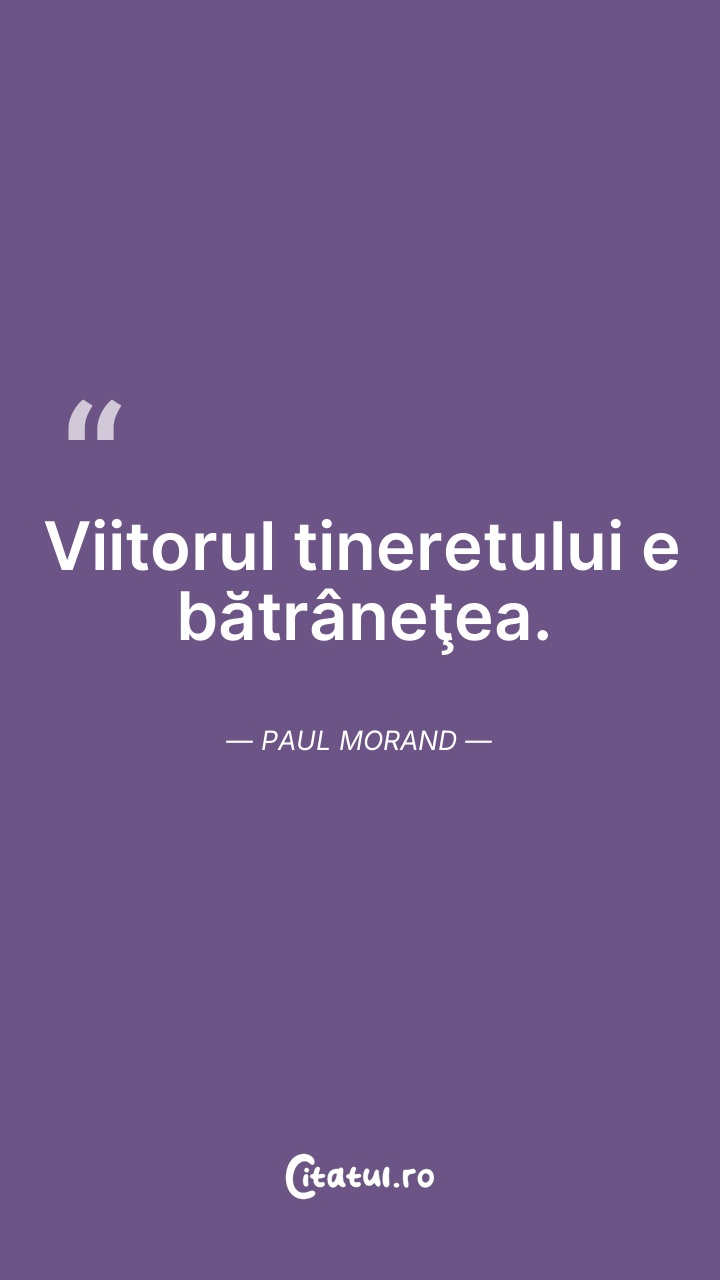 Viitorul tineretului e bătrâneţea. Paul Moran ... Citește tot citatul >