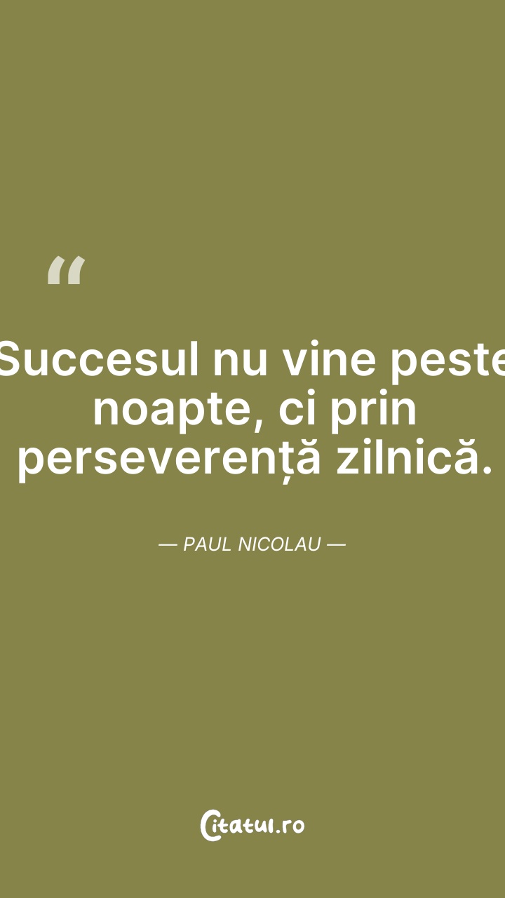 Succesul nu vine peste noapte, ci prin persev ... Citește tot citatul >