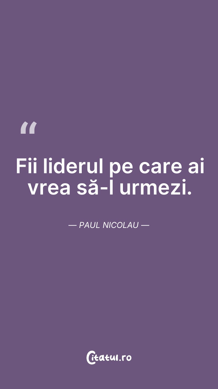 Fii liderul pe care ai vrea să-l urmezi. Paul ... Citește tot citatul >