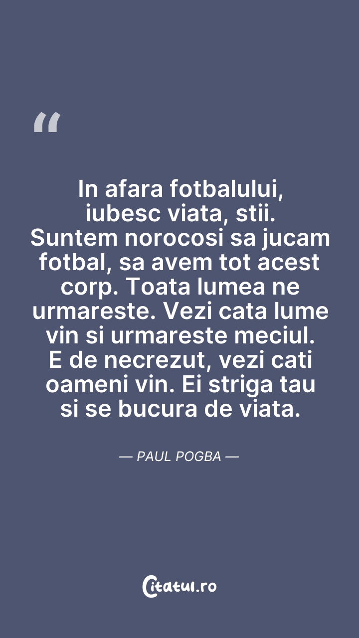 In afara fotbalului, iubesc viata, stii. Sunt ... Citește tot citatul >