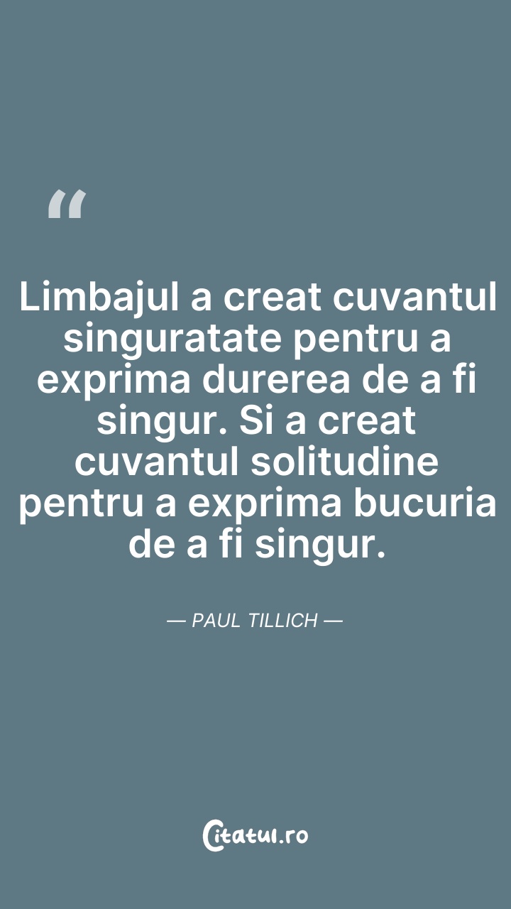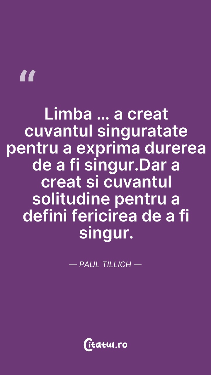 Limbajul a creat cuvantul singuratate pentru ... Citește tot citatul >
