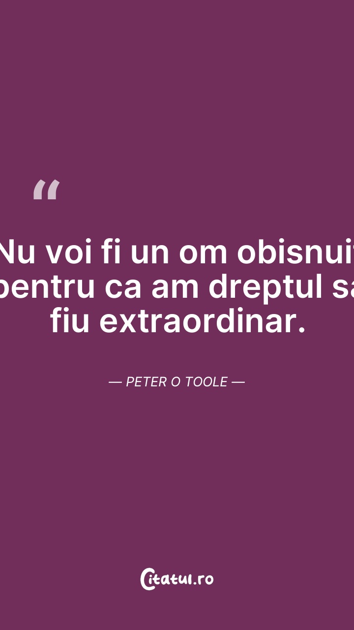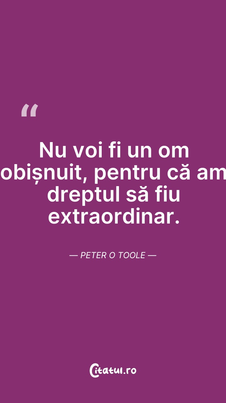 Nu voi fi un om obisnuit, pentru ca am dreptu ... Citește tot citatul >